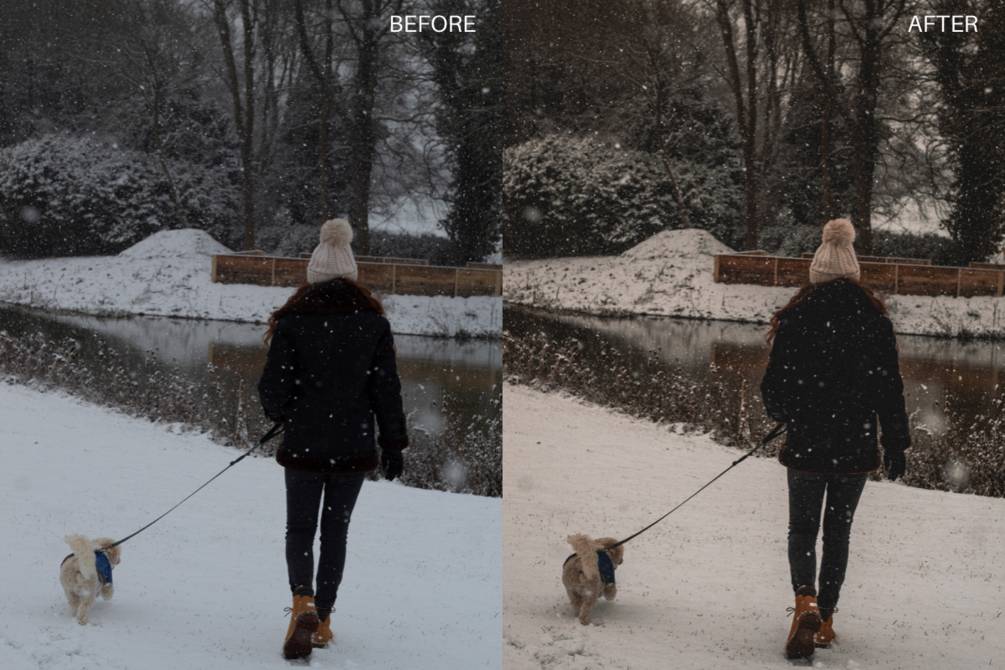 Contains 4 presets for both mobile and desktop. Made to work beautifully for all the different weather and lighting that the winter brings. Images shown have been edited using both the Lightroom app for desktop and mobile.